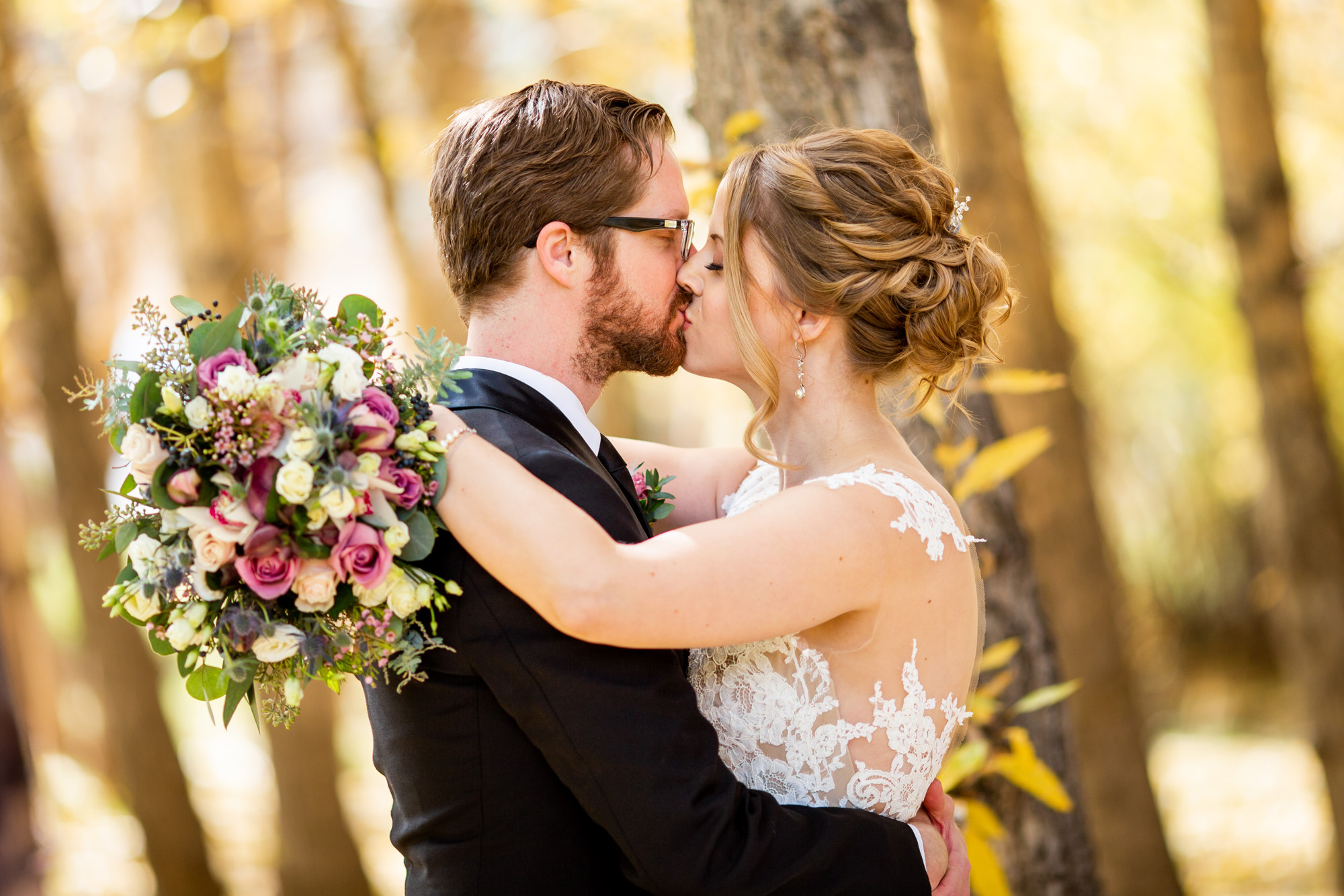 They chose the new venue at Black Canyon Inn, The Boulders for it’s amazing mountain views, all-inclusive services, and easy access. We have had the most beautiful fall all over the state, with slow color changes and incredible weather. So when October 1 came, it was truly stunning. Every detail was perfect, from Rachel’s amazing dress and cute UP! movie themed pin on her bouquet to the falling golden leaves and their passionate first look. In their words, “the entire day felt like a fairytale and it’s so difficult to choose just one moment. It was all magical.”