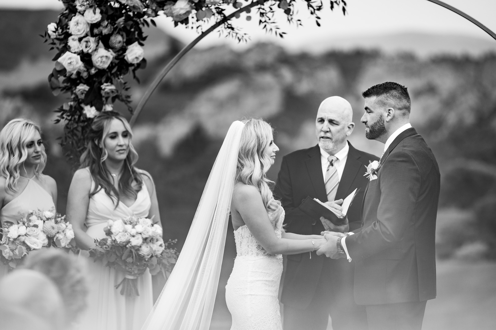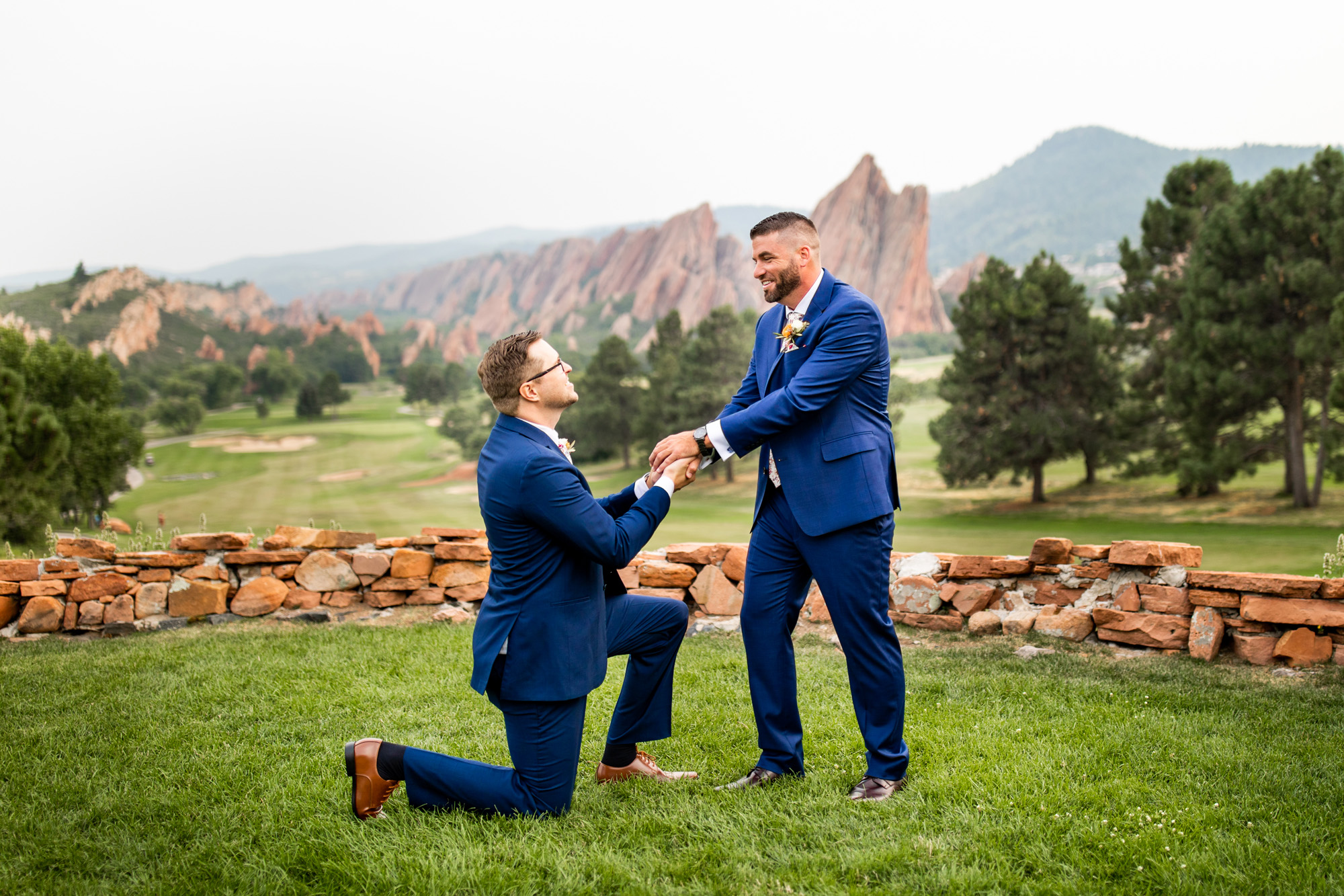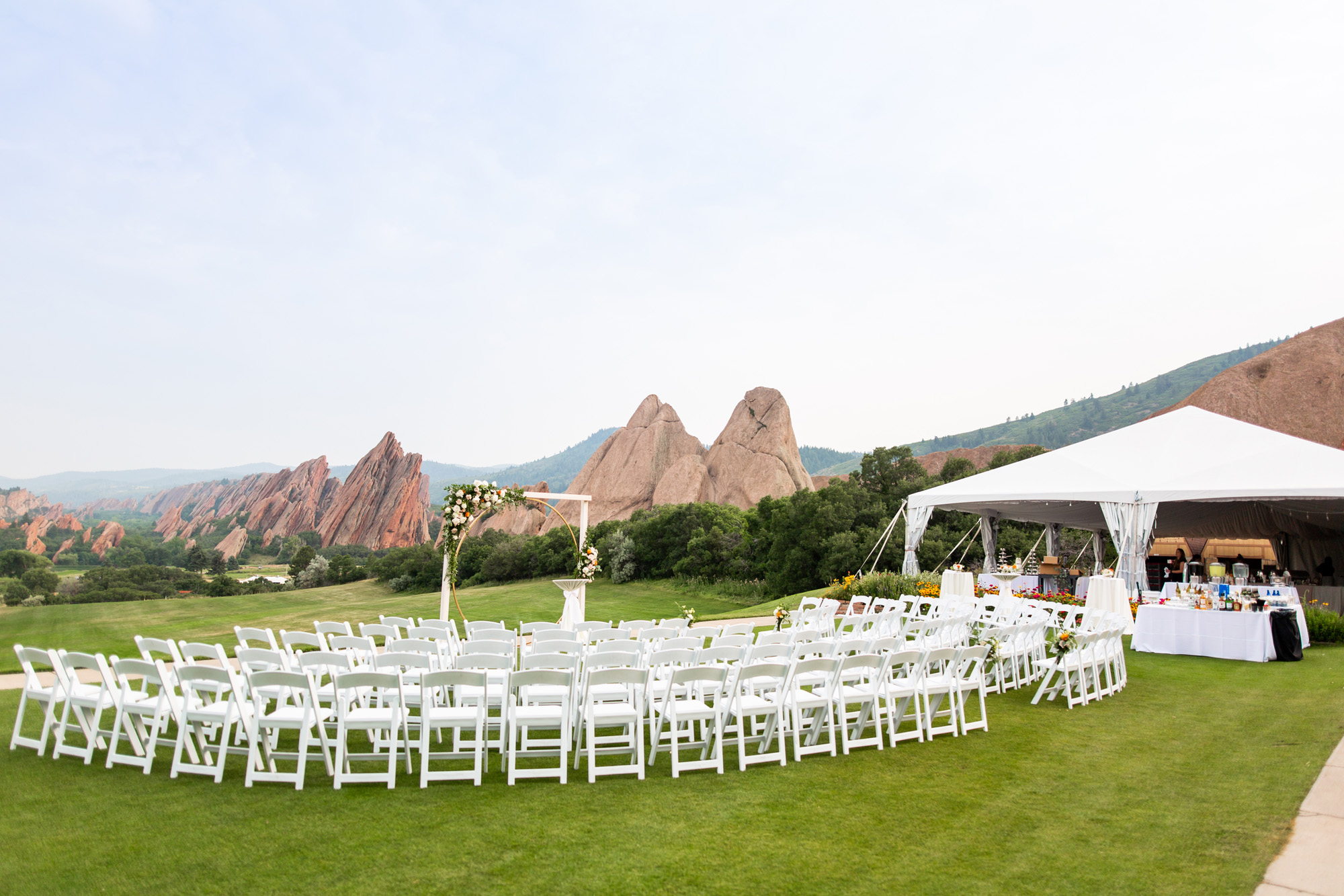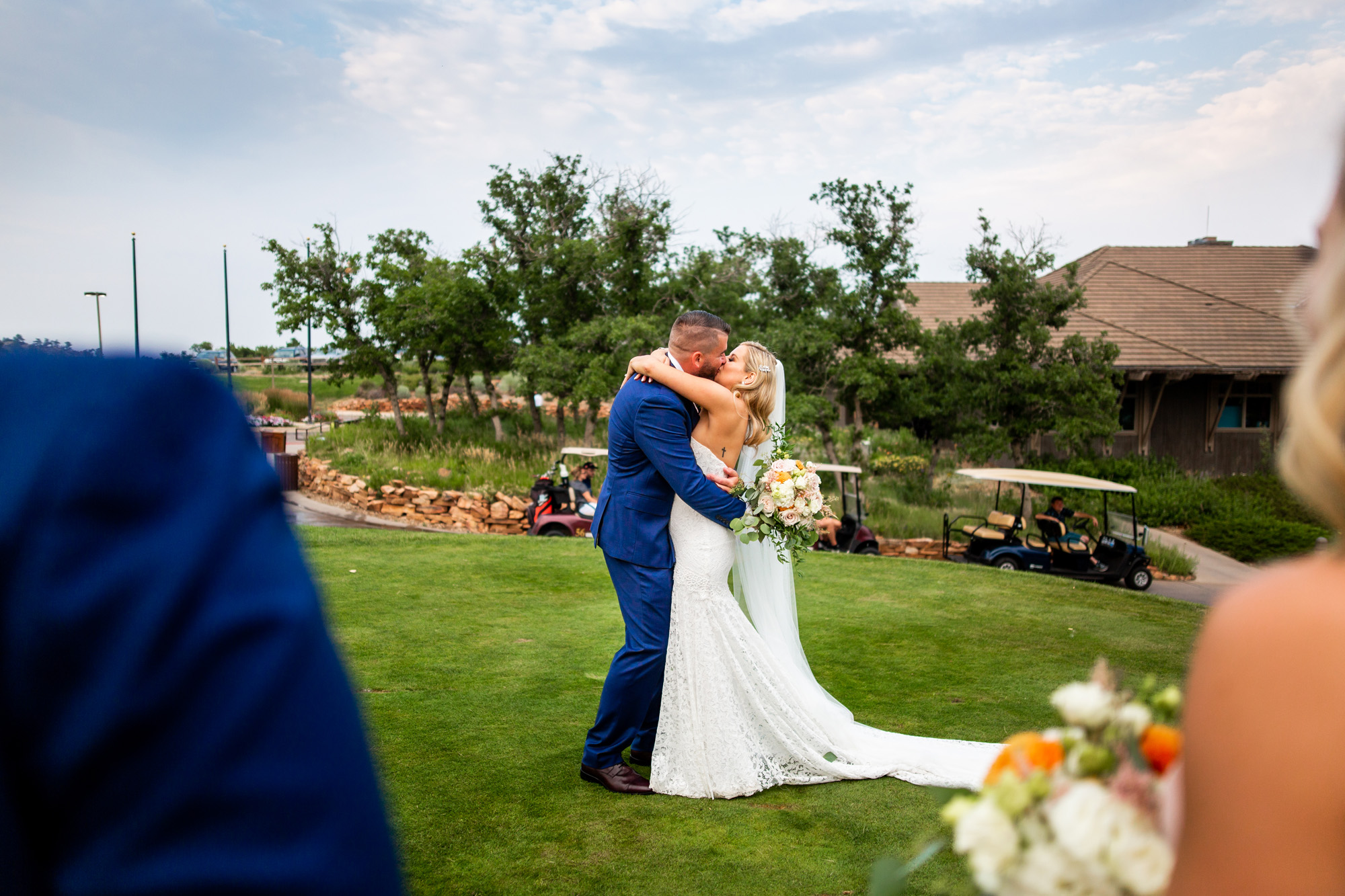 They chose Arrowhead Golf Course for the backdrop of their wedding for its beautiful views of the surrounding Colorado red rocks and great location. Their July wedding date arrived hot and sunny. While the wildfire smoke from other states sure is annoying, it was a small blessing in softening the light and keeping the temperatures down for their big day.